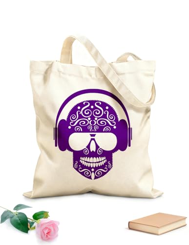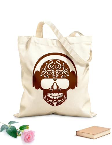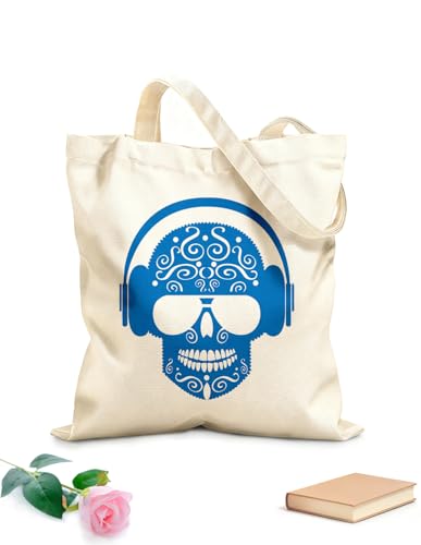 AILOONG Sac de courses en toile de coton Casque audio musical en forme de crâne pour adolescents tissu épais de 340g/m² Utilise comme sac cadeau