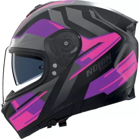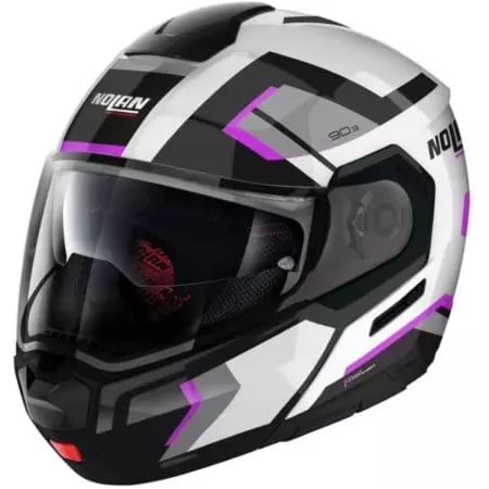 Casque Nolan N90-3 Lighthouse N-Com 49 Blanc Métal Noir Fuchsia - Casque Modulable NOLAN