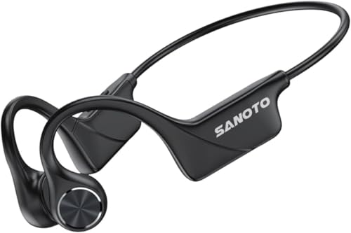 SANOTO Casque Conduction Osseuse Bluetooth 5.3, Open Ear Casque Bluetooth Sans Fil Sport IPX5 Étanche et Anti-poussière Conduction Osseuse Batterie longue durée Running Fitness Cycling Casque Écouteur