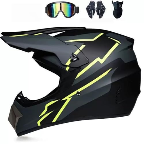 Intégral Casque Motocross avec Lunettes Gants Masque, Adulte Jeunesse Hors Route VTT Scooter Moto Casque, BMX Quad Moto Cross Accident Casque, Approuvé par Le Dot(F5,L(56-57cm))