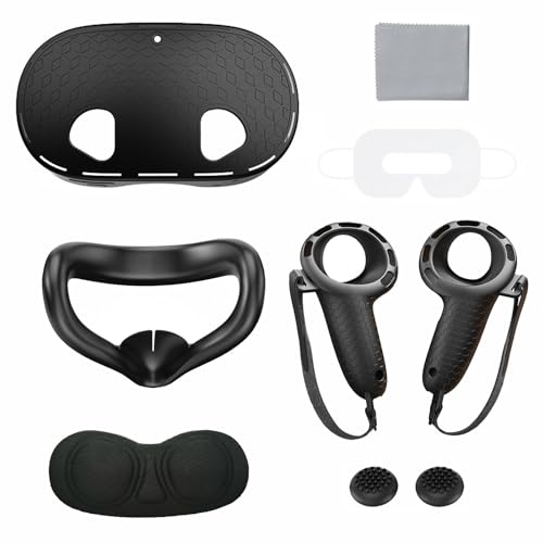 Tyasoleil Accessoires pour Oculus Quest 3, ensemble de housses en silicone pour Meta Quest 3, ensemble d'accessoires de réalité virtuelle, comprend une housse en cuir pour manette, une coque de VR, un