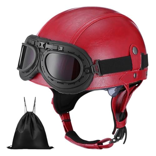EBAYIN Retro Casque Demi Jet, Casque Jet Vintage, Casque Moto Scooter, Casque Bol Homologué ECE Casque De Protection for Hommes Et Femmes, Casque De Cyclomoteur avec Lunettes(I,S=(55~56cm))
