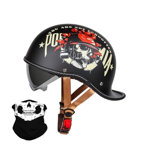 Retro Moto Casque Bols,Homologué ECE Casque Moto Demi-Jet Homme Casque Semi-Ouvert Casque Jet Casque Moto Et Scooter Convient aux Hommes Femmes Adultes S,L