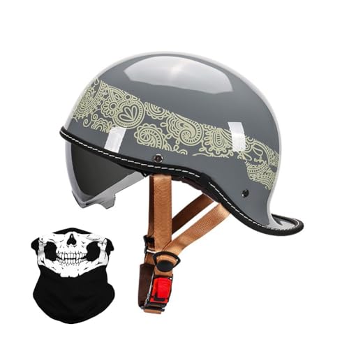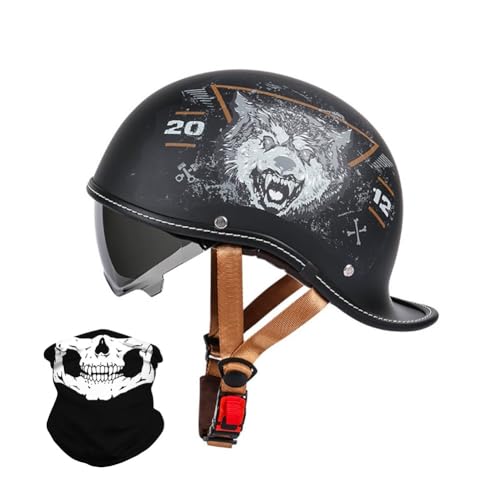 Casque De Moto Adulte avec Anti Scratch Visiere, Casque Moto Demi-Jet Homme, Casque Semi-Ouvert Casque Jet Urbain Vintage Casque Moto Et Scooter Compact Femme Demi Casque 2,M