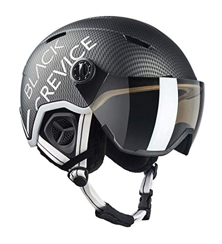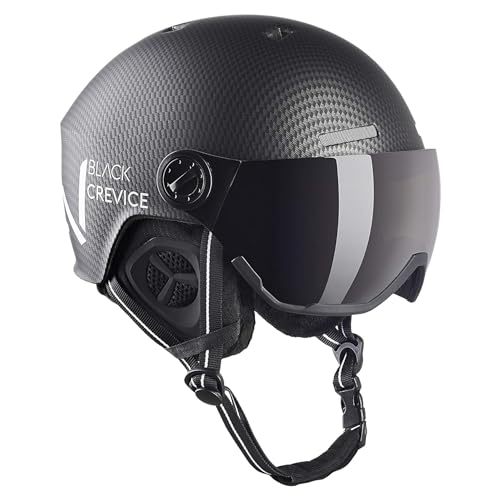 BLACK CREVICE Casque Ski Silvretta I Casque Ski avec visière Style Pilote I différentes Couleurs I Casque Ski Hommes & Femmes I Casque en Polycarbonate I Casque (XS, Carbone Noir)