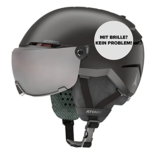 Atomic Savor Visor JR Casque De Ski avec Visière, Noir, Taille XS, Enfant Et Adolescent, Absorption Maximale des Chocs, Ventilation Active Aircon, Masque À Miroir Haut De Gamme