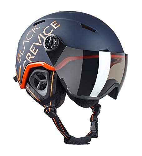 Black Crevice Gstaad I Casque de Ski avec visière I pour Homme et Femme I Casque de Ski en Polycarbonate Respirant Taille réglable (Bleu Marine/Orange, S/M (54-57 cm)