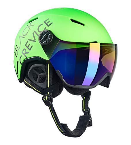 BLACK CREVICE Casque de Ski Vail I Casque de Ski avec visière en Style Pilote en différentes Couleurs I Casque de Ski Hommes & Femmes I en Polycarbonate I Casque de (Large, néon Vert)