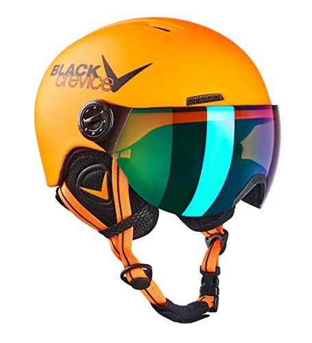 BLACK CREVICE Kids Ski Helmet Leogang I Casque de Ski avec visière Style Pilote différentes Couleurs I Casque de Snowboard pour garçons & Filles I Casque de (48-52, Noir/Mat Orange)