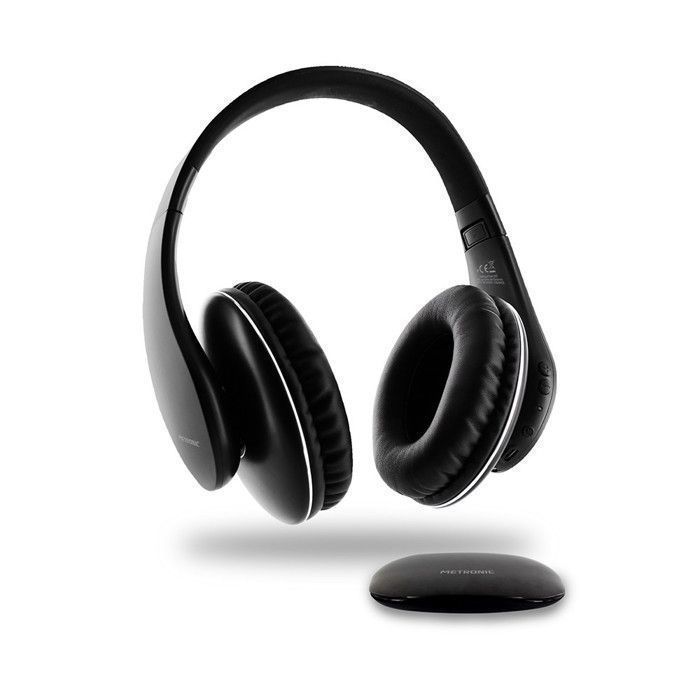 METRONIC 480200 Casque TV Stéréo sans Fil Entrée Optique Numérique Léger 200g et Ergonomique Réglage du Volume sur Casque - Noir