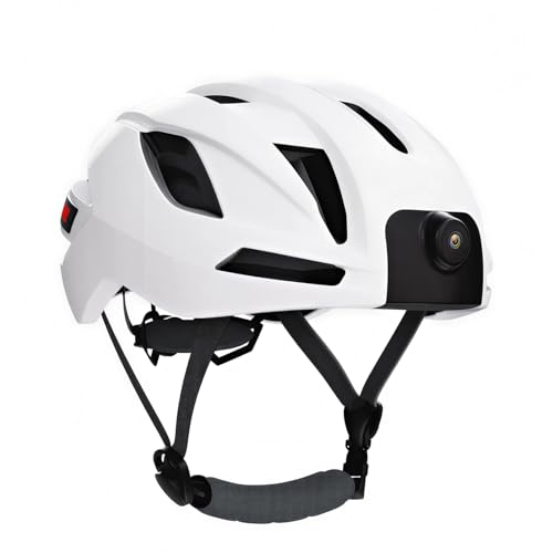 Fockety Casque de vélo Intelligent avec Bluetooth, Casque de vélo électrique avec Clignotants, caméra 1080p et télécommande, 14 aérations, Musique et appels Bluetooth, pour Hommes (White)