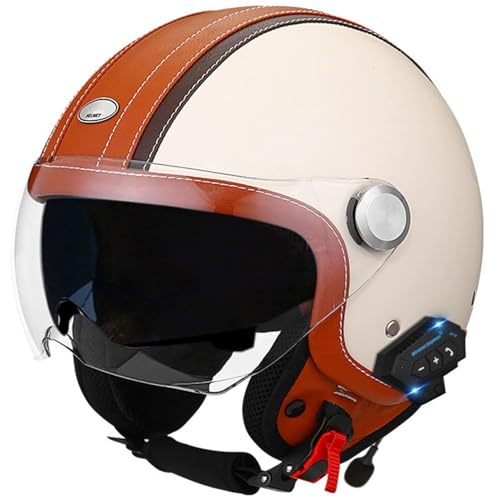 Casque Jet Moto Bluetooth Vintage avec Double Visière Casque Mobylette Ouvert Homologué ECEDOT Rétro 3/4 Demi Casques Moto Casques Vélo Scooter Chopper pour Homme Et Femme 6,M(57~58CM)