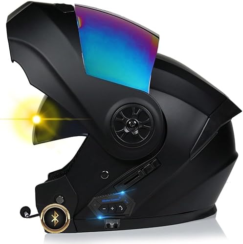 Casque De Moto Rabattable Bluetooth, Casque De Vélo De Rue avec Double Visière, Casque Bluetooth Crash Casques Modulaires pour Adultes Hommes Femmes Approuvé Dot/ece
