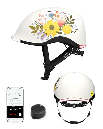 Lumos Nyxel MIPS Casque de vélo à LED City & Commuter | Éclairage à 360°, feu Stop, MIPS, USB-C, Bluetooth, IPX6 | Flower Power | Tailles S