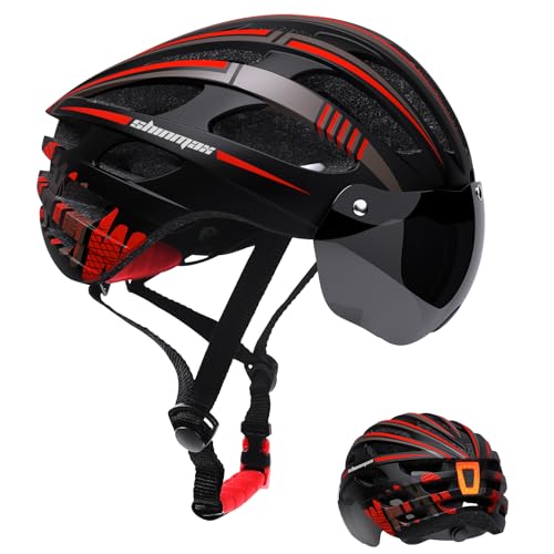Shinmax Casque de Vélo avec Éclairage LED, Casque Velo pour Homme Femme Casque Vélo avec Lunettes Magnétique Amovible Visiere Casque VTT et VTC avec Éclairage de Sécurité Casque Cyclisme Route NR-096