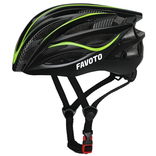 Favoto Casque de Vélo Réglable Léger - Casques de Cyclisme VTT Route Montagne pour Homme Femme Adultes Certifié CE TUV L 59-61cm Noir+Vert