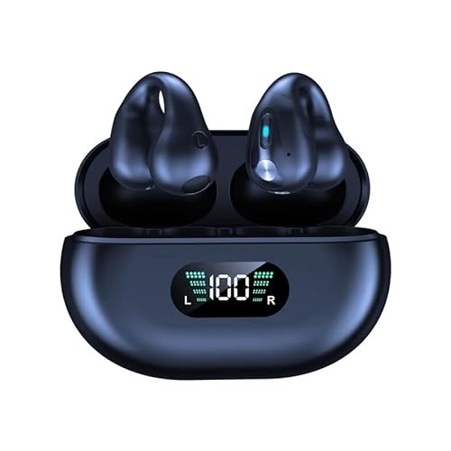 LOBKIN Écouteurs à Clip, Open Ear Earbuds sans Fil Bluetooth 5.4, Casque Conduction Osseuse avec Écran LED et Mémoire de 4 Go, Microphone HD Intégré, 36 Heures d'Autonomie