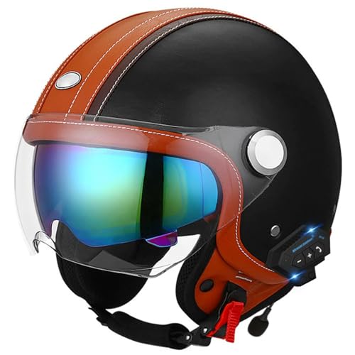 Casques Jet Moto Bluetooth Vintage Casque Scooter 3/4 Homologué ECEDOT Demi-Casque de Moto Ouverte Homme Et Femme Casques Mobylette Adultes pour Street Bike Cruiser B,L=59~60CM