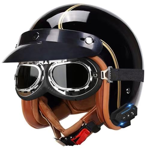 Casques de Moto Bluetooth Jet ECEDOT Homologué Casque Scooter Mobylette Ouverte Vintage Demi Casque 3/4 Adulte avec Llunettes pour Homme Et Femme Casques Cyclomoteur G,M(57~58CM)