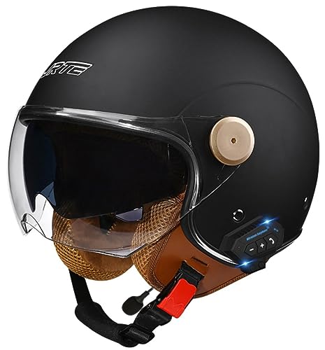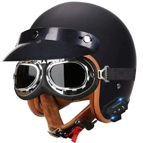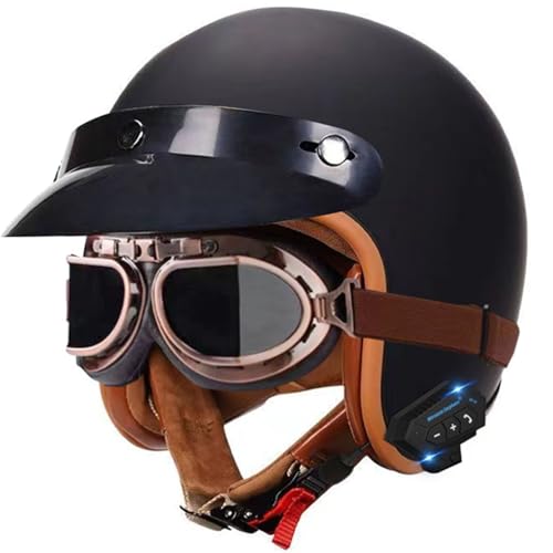 Casques de Moto Bluetooth Jet ECEDOT Homologué Casque Scooter Mobylette Ouverte Vintage Demi Casque 3/4 Adulte avec Llunettes pour Homme Et Femme Casques Cyclomoteur E,S(55~56CM)