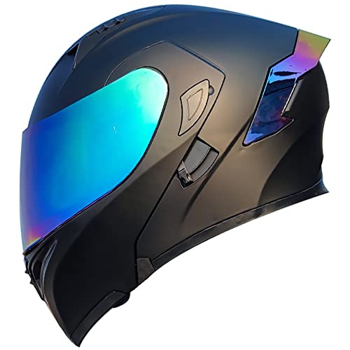 Casques de moto Bluetooth pour hommes et femmes, casque de moto intégral modulable avec double pare-soleil, conception de ventilation légère, approuvé DOT/ECE, double haut-parleur,Color S-L(59~60cm)