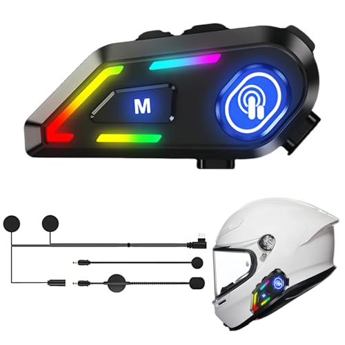 Hemlosk Oreillette Bluetooth pour Casque Moto, Casques Bluetooth Moto bt5.3, Autonomie de 16 Heures, Appel Mains Libre, Microphone de Contrôle D'appel, Fonction de Réduction du Bruit, pour Casque