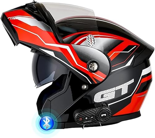 Flip-Up Casques De Moto Modulable,Bluetooth Casque Moto Intégraux avec Double Visière Microphone Casque De Motocross pour Homme Et Femme ECE Homologué Modulables Casques 4,4XL