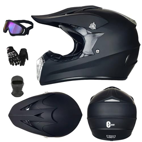Jeunesse Enfants Intégral Casque de Motocross, avec Lunettes Gants Masque, Unisexe Mode Hors Route Courses Moto Karting Casques, Descente Enduro BMX MTB VTT Dirt Bike Casque(BB,XL/58-59CM)