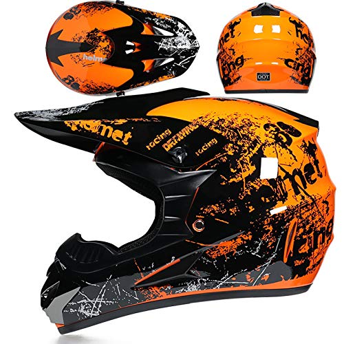 SMTSEC Casque De Moto pour Jeunes Casque De Motocross Enfants Adultes Casques De Cross Tout-Terrain VTT MX Enduro Casque Intégral avec Lunettes Masque Gants Casque De Descente,Orange-S