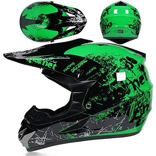 SMTSEC Casque De Moto pour Jeunes Casque De Motocross Enfants Adultes Casques De Cross Tout-Terrain Casque De Moto VTT MX Enduro Casque Intégral avec Lunettes Masque Gants Casque De Descente,Green-XL