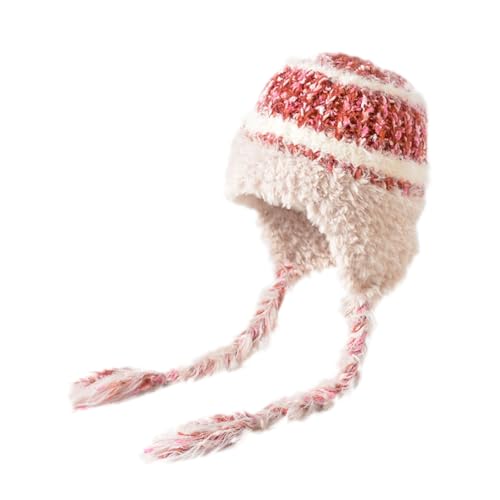 Casquette Hiver Femme - Bonnet d'hiver avec Larges Cache-Oreilles en Maille Épaisse Et Thermique pour Temps Froid (Beige One Size)