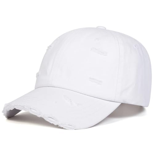 CHENWEIHAI Casquette Homme Cap Chapeau Casquettes De Baseball en Jean Déchiré Unisexe Casquettes Décontractées Ajustables D’Extérieur Casquette Solaire Casquette De Sport (Blanche)