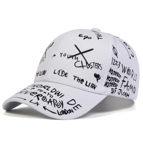 CHENWEIHAI Casquette Homme Cap Chapeau Casquettes De Baseball Graffiti Unisexe Casquettes Décontractées Ajustables D’Extérieur Casquette Solaire (Blanche)