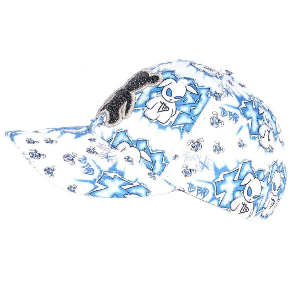 Casquette Teddy Bad Blanche et Bleue Strass Print Streetwear Baseball City-Tail