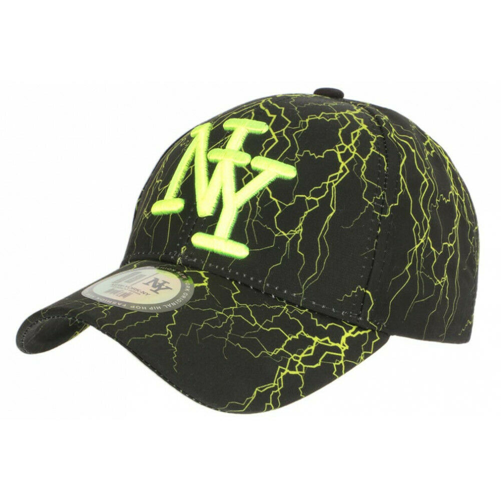 Casquette Enfant NY Verte Effet Flamme Jaune - Fille Garçon 7 a 12 Ans-Taille u