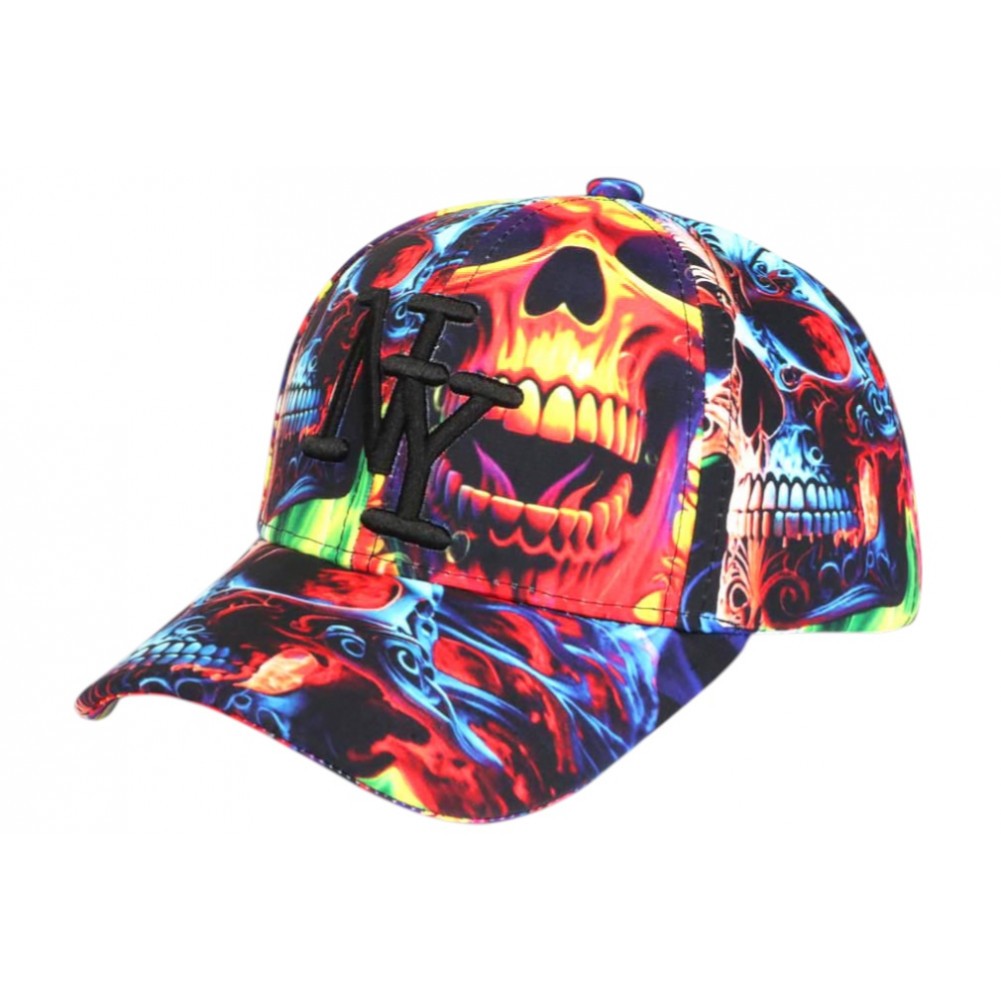 Casquette NY Enfant Crâne Rouge Vert Look Streetwear Skull 7 a 12 ans-Taille un