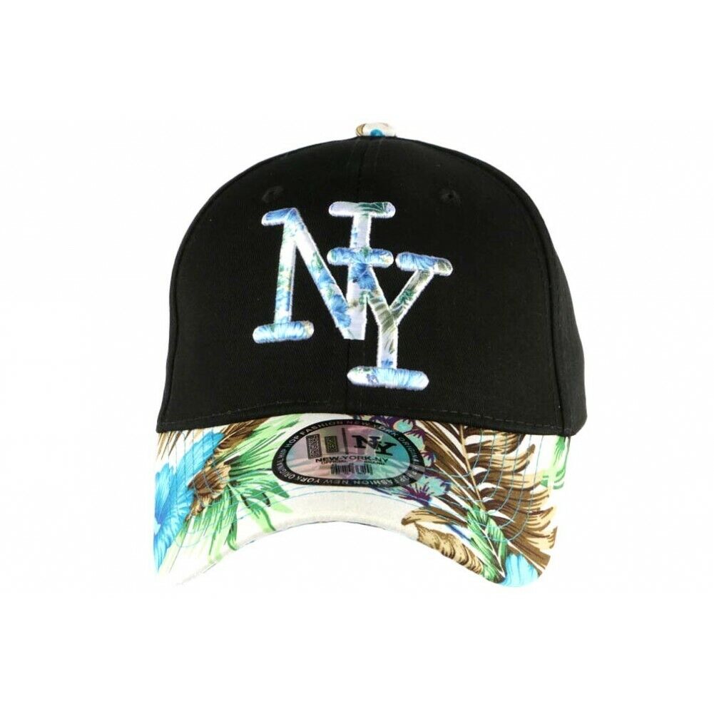 Casquette enfant NY bleu et beige à fleurs 7 à 12 ans-Taille unique