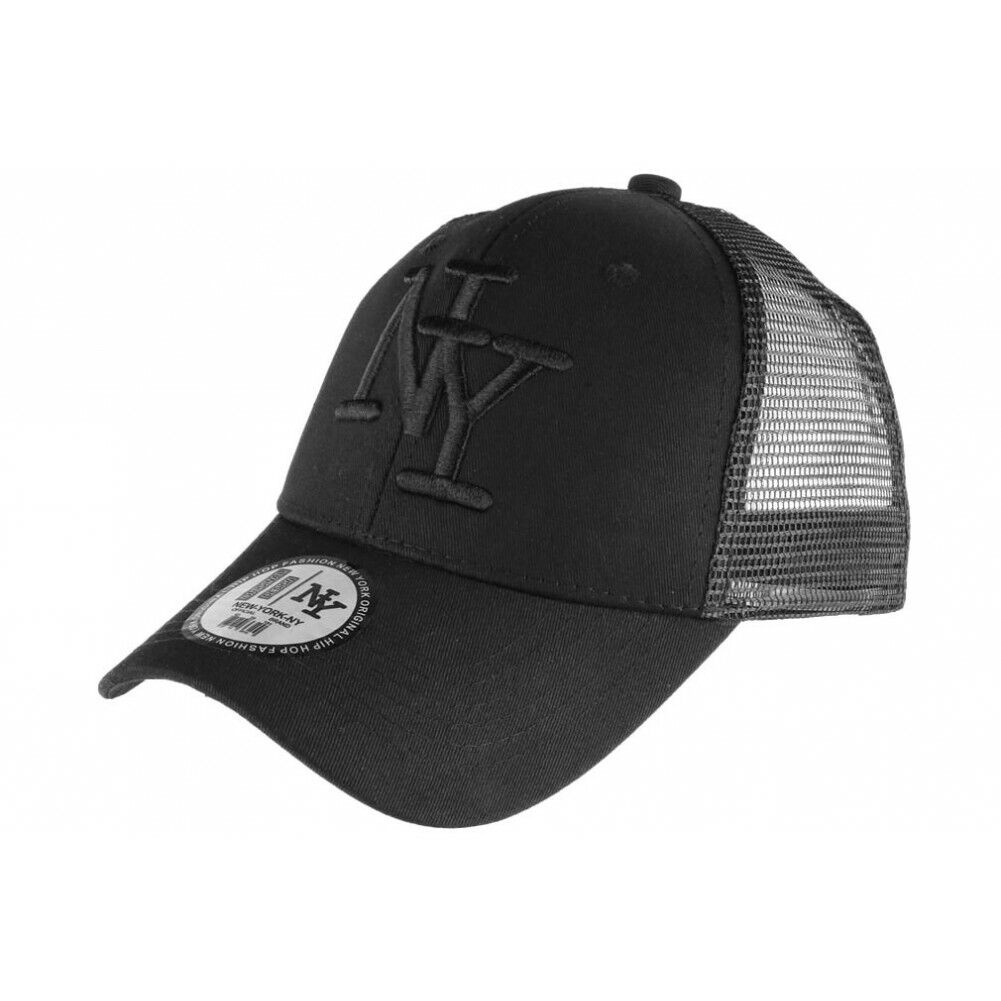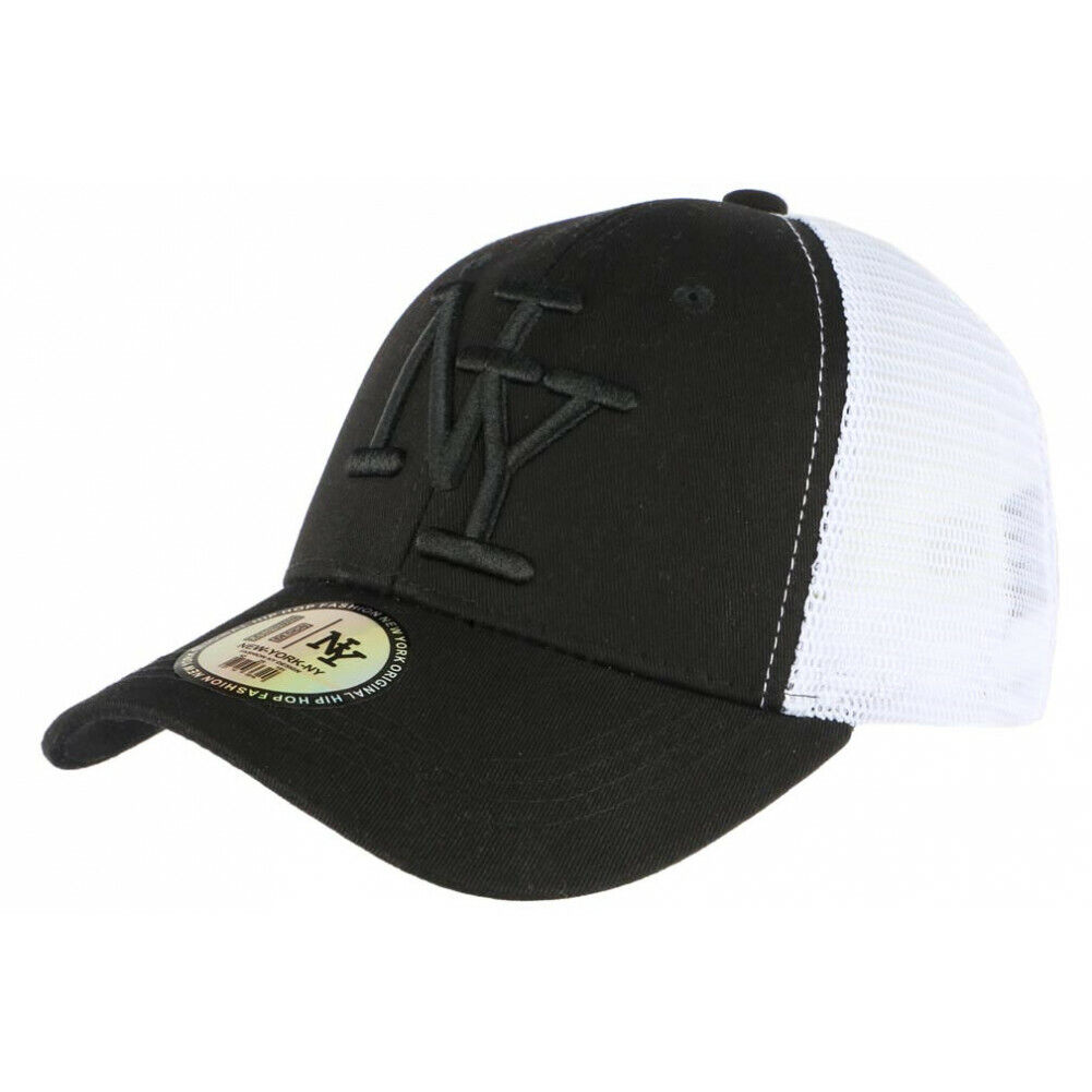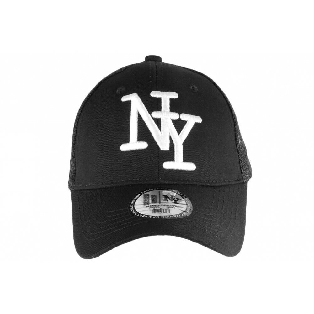 Casquette Filet NY Noire et Blanche Baseball Trucker Gybz-Taille unique