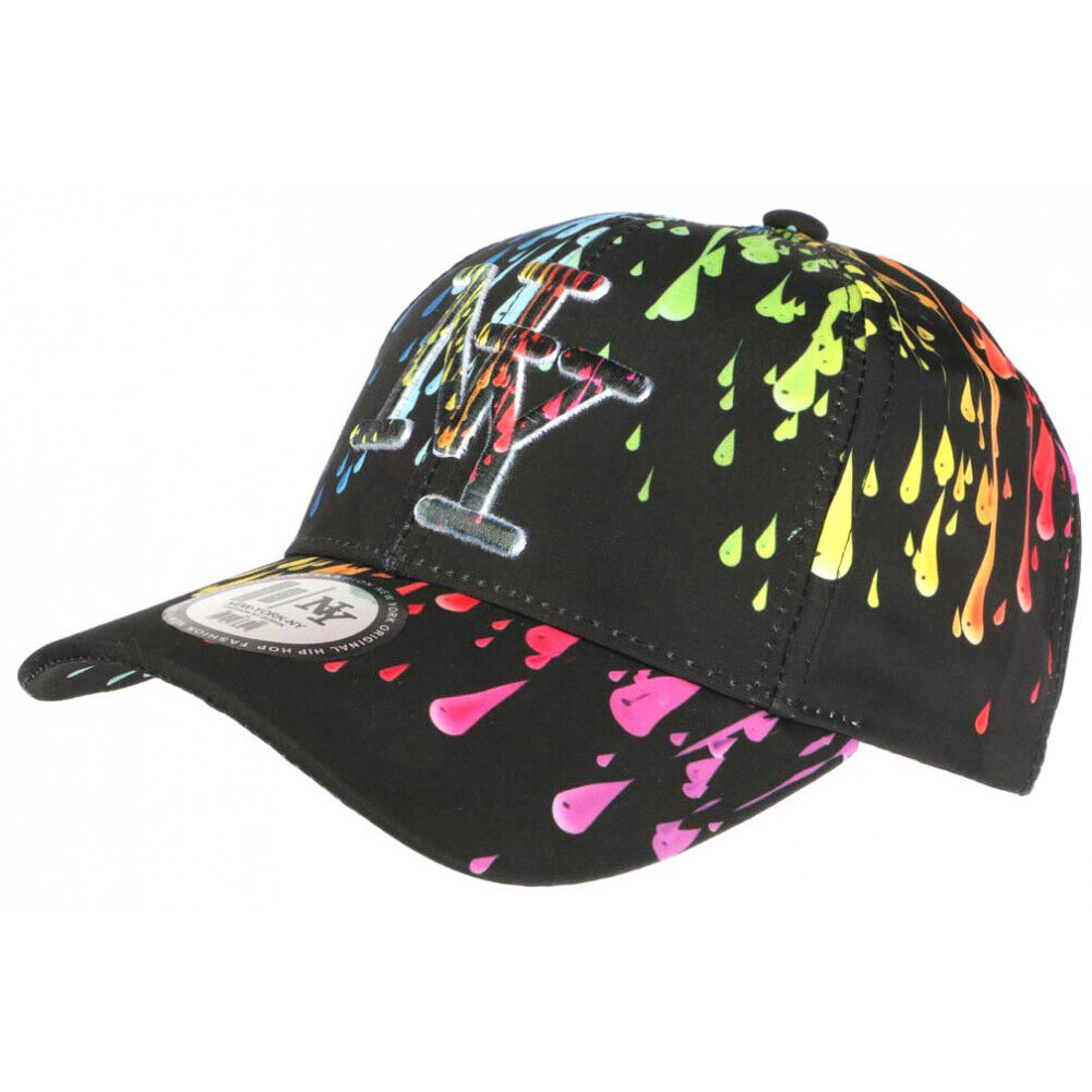 Casquette NY Vintage Noire Tie Dye en Coton Baseball Retro Fashion-Taille unique