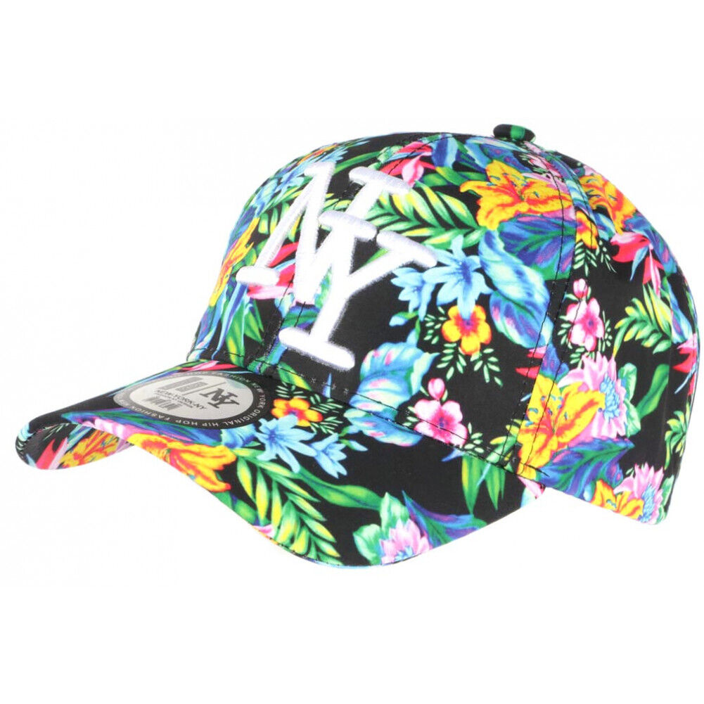 Casquette NY Bleue et Noire Fleurs Tropicales Tendance Baseball Phuket-Taille u