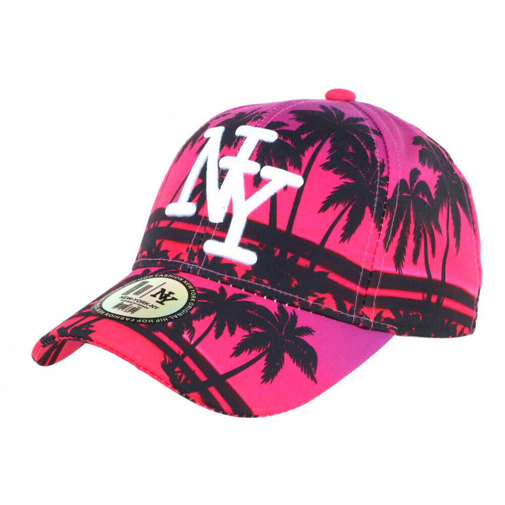 Casquette NY Rose et Noire Palmiers Look Tropical Bora Baseball-Taille unique