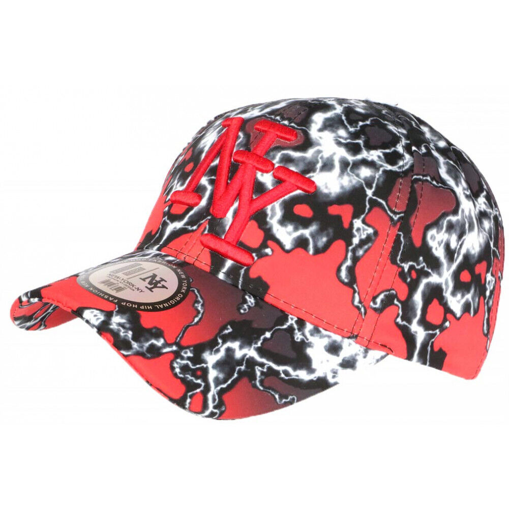 Casquette NY Rouge et Noire Style Eclairs Streetwear Baseball Stormy-Taille uni