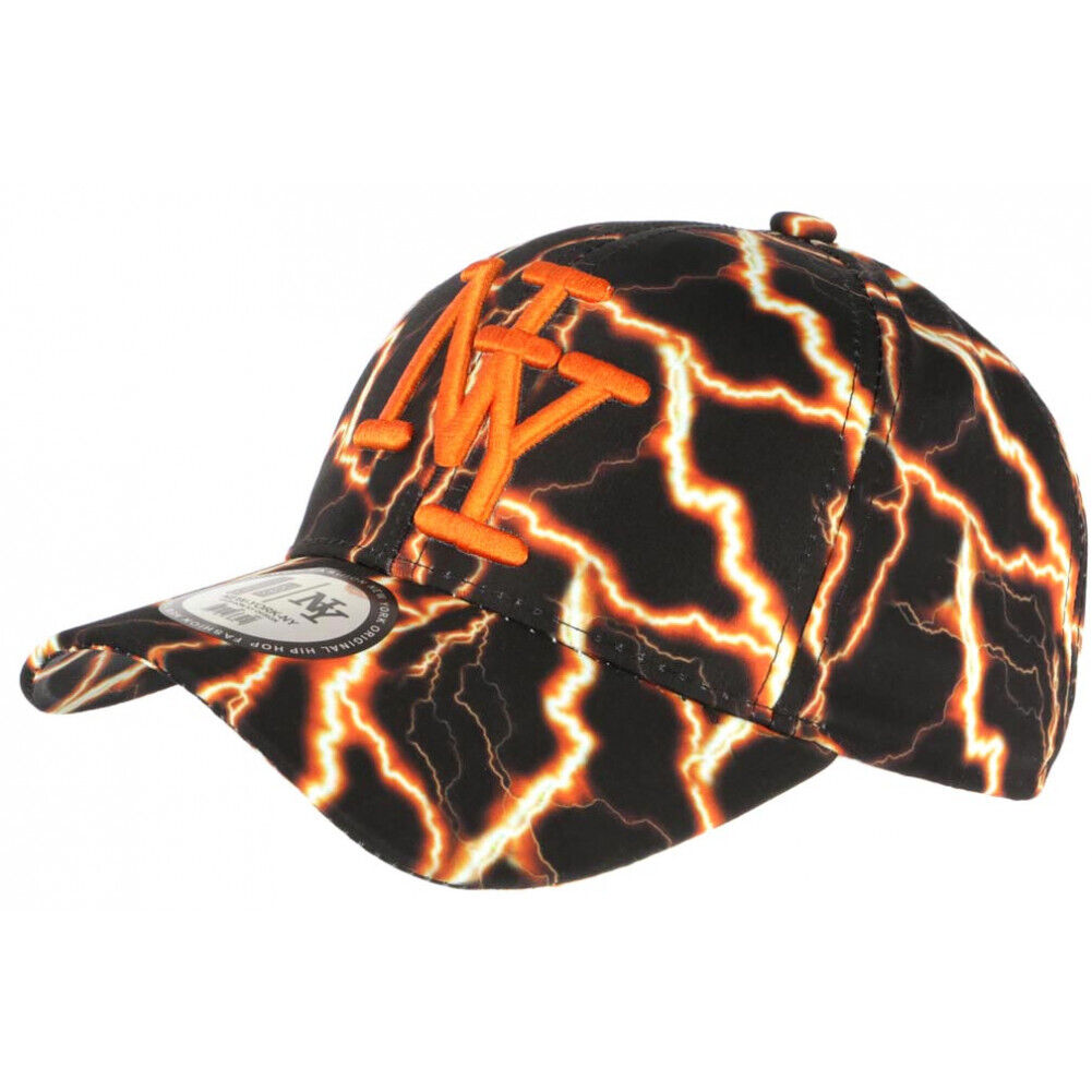 Casquette NY Orange et Noire Design Eclairs Streetwear Baseball Stormy-Taille u
