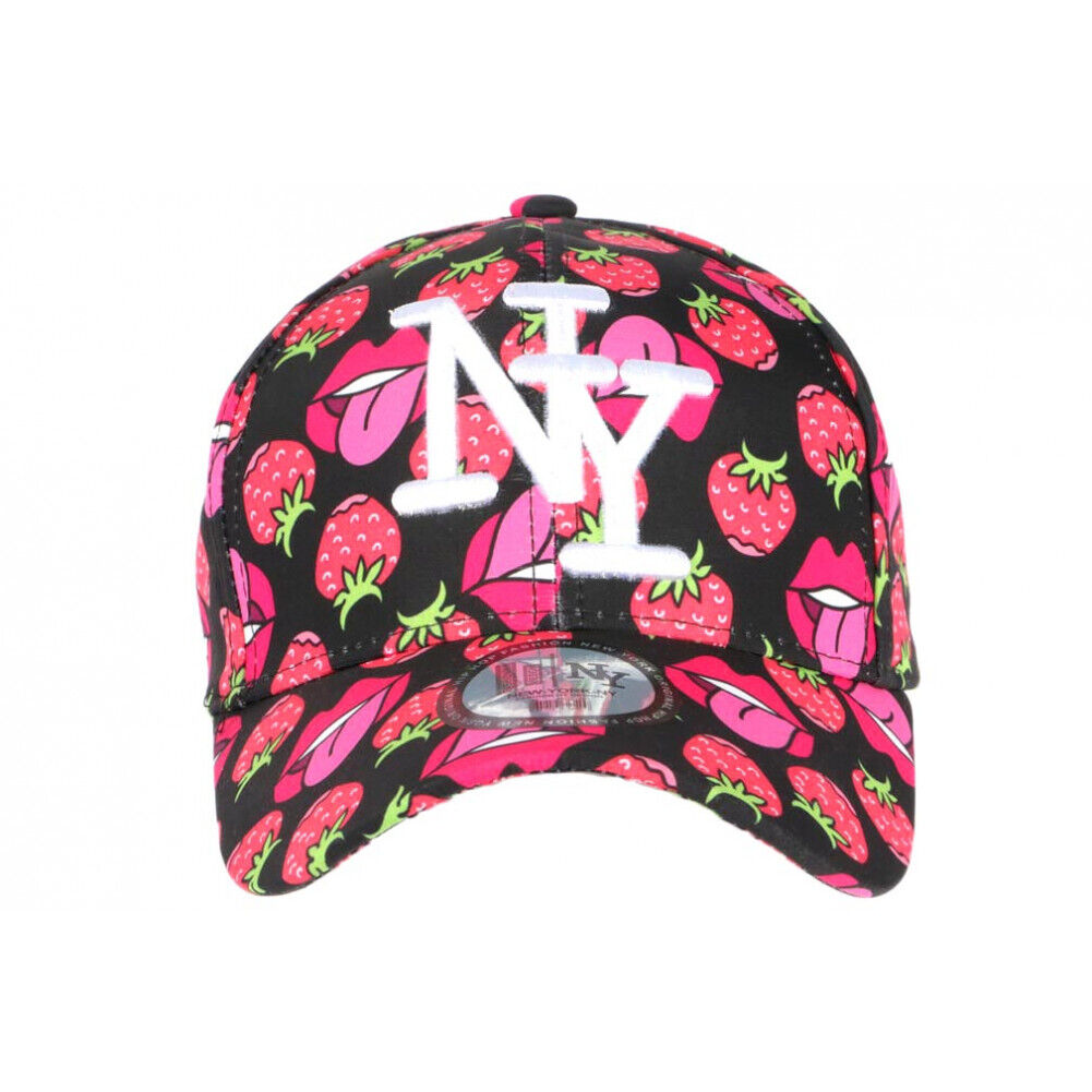 Casquette NY Rouge et Noire Print Fraise Original Baseball Fruitus-Taille unique