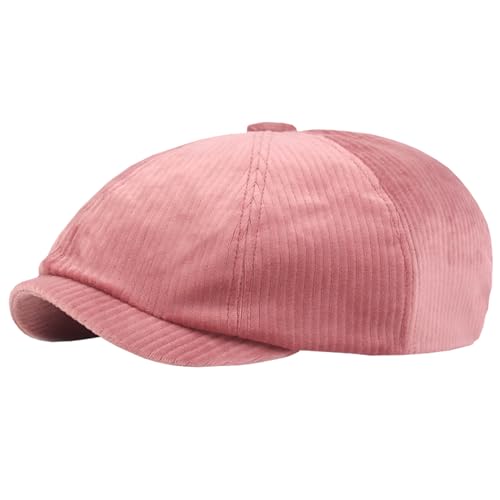 B-HOT Béret Homme Femme Casquette à Visière Elastique Chapeau Plat Gavroche Voyage Loisir Gatsby Cabbie Newsboy Cap Rose