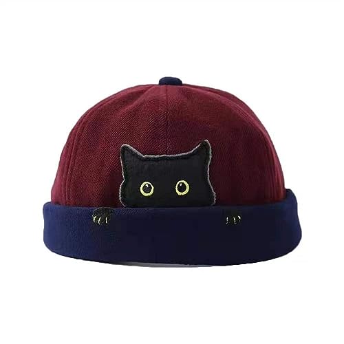 Chapeau De Propriétaire Tendance À Motif Chat Casquette Melon sans Visière pour Homme Et Femme Bonnets Décontractés Style Marin pour Enfant(Rouge,58)