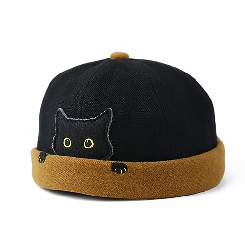 Chapeau De Propriétaire Tendance À Motif Chat Casquette Melon sans Visière pour Homme Et Femme Bonnets Décontractés Style Marin pour Enfant(Black,58)