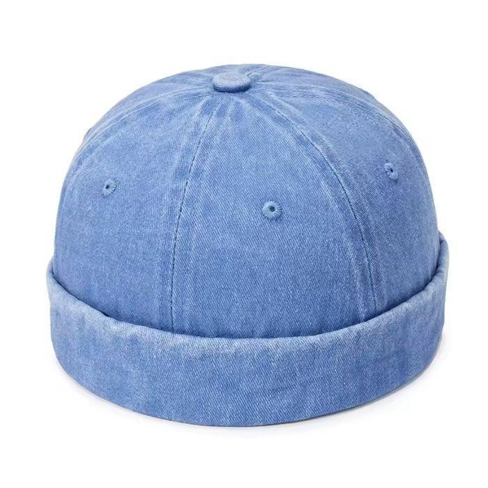 Bonnet Docker / Casquette sans visière - kufi - coton délavé - bleu - taille réglable