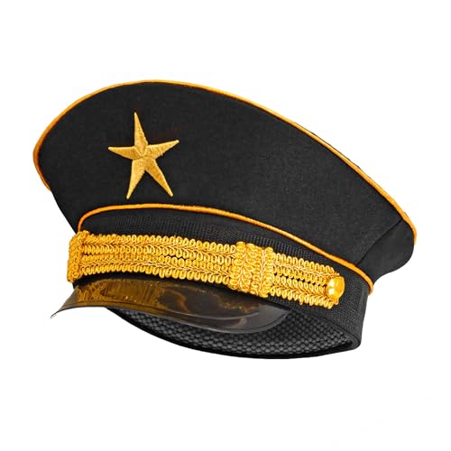 W WIDMANN MILANO Party Fashion - Casquette d'officier noire avec étoile dorée, chapeau de costume pour capitaine, pilote, carnaval et cosplay