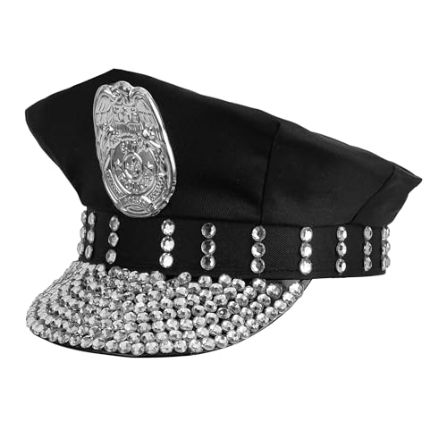 W WIDMANN MILANO Party Fashion - Casquette de policier avec strass, pour femmes et hommes, noire, casquette de policier, pour le carnaval